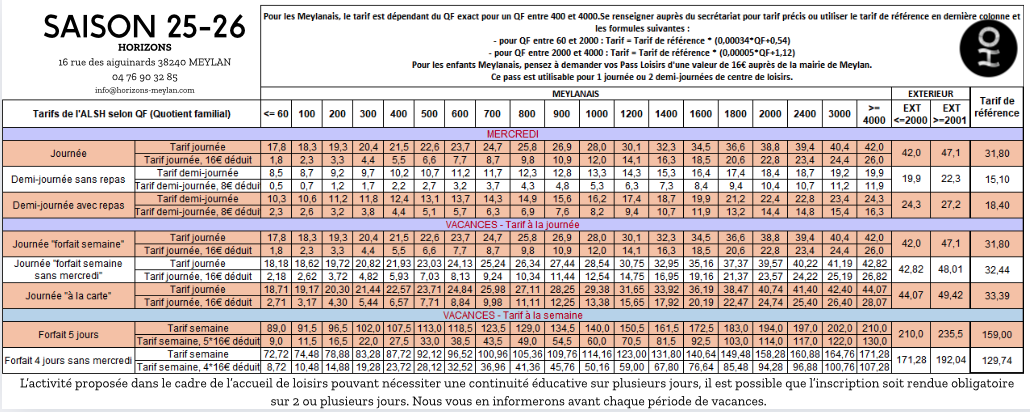 - C’est votre première inscription ? Il est nécessaire de passer au secrétariat d’Horizons aux horaires d’ouverture muni de votre quotient familial Caf + fiche sanitaire de liaison ( téléchargeable ici ) ou à défaut le carnet de santé.